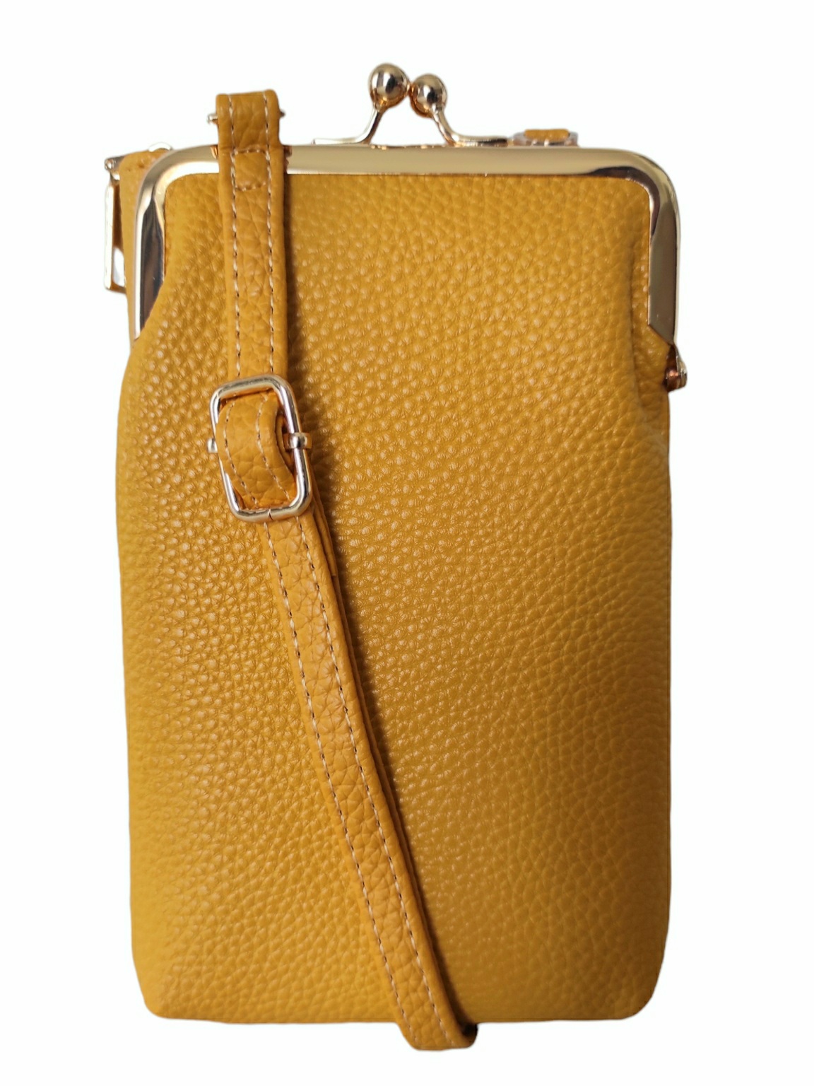 Γυναικείο τσαντάκι χιαστί κιτρινο με θήκη για κινητό που μετατρέπεται σε ομορφο και πρακτικό πορτοφόλι. Διαθέτει δύο χώρους για τα χαρτονομίσματα , θήκη με φεερμουάρ για τα κέρματα και θήκες για κάρτες.