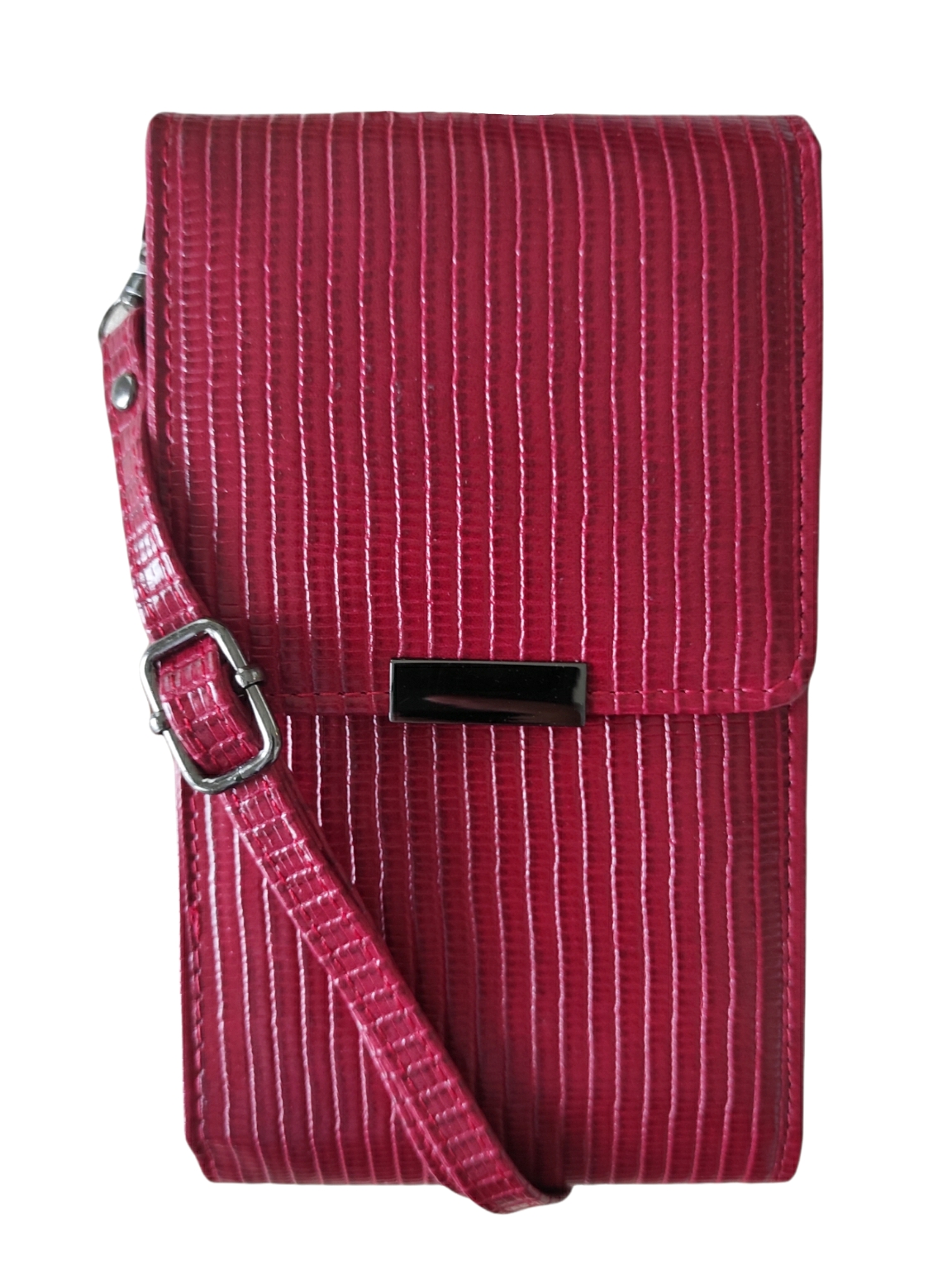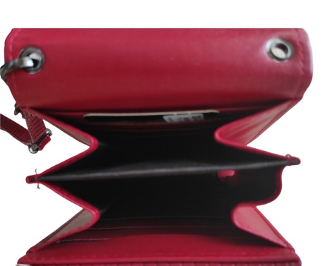 Γυναικείο τσαντάκι με θήκη για κινητό κόκκινο χρώμα με ανθρακι διακοσμητικό μεταλλάκι στο κούμπωμα.Διαθέτει εσωτερικό χώρο χωρισμένο σε δύο μέρη, ένα για το κινητό κι ένα για όλα τα απαραίτητα, και θήκες για κάρτες