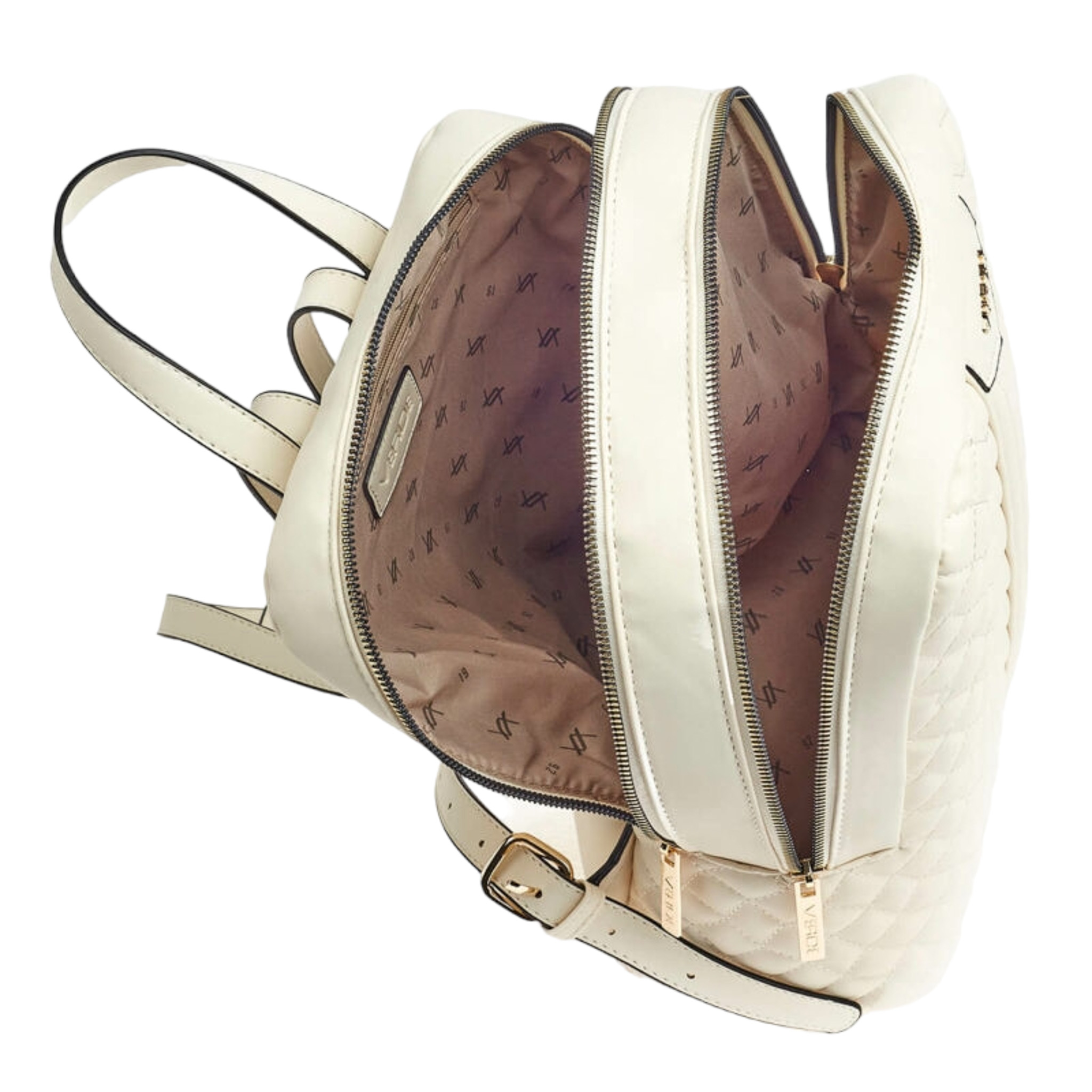 Γυναικείο σακίδιο πλάτης verde , διπλό ,μπεζ χρώμα.Διαθέτει δύο μεγάλες κύριες θήκες που κλείνουν με φερμουάρ, με μικράτσεπάκια εντός .