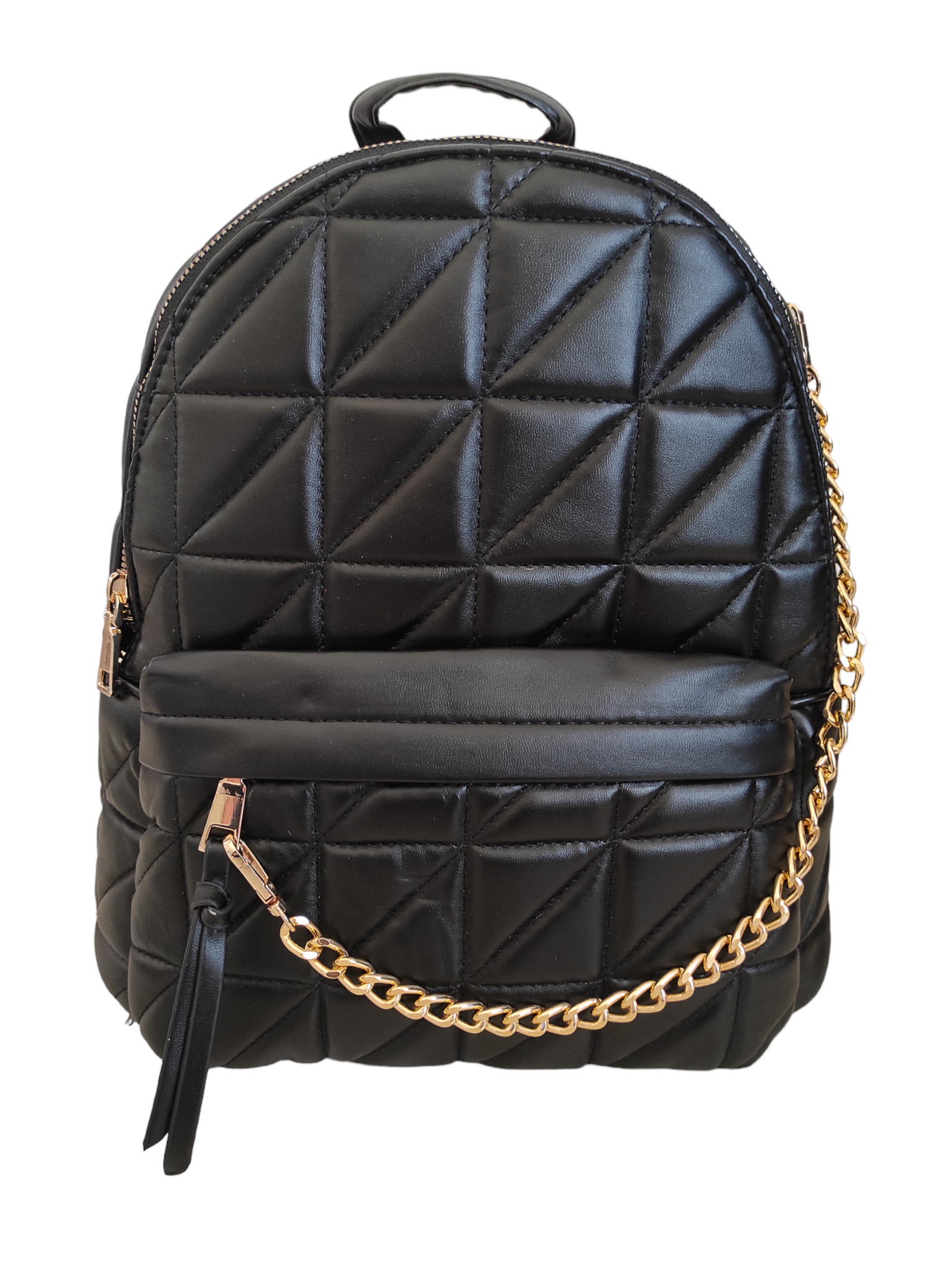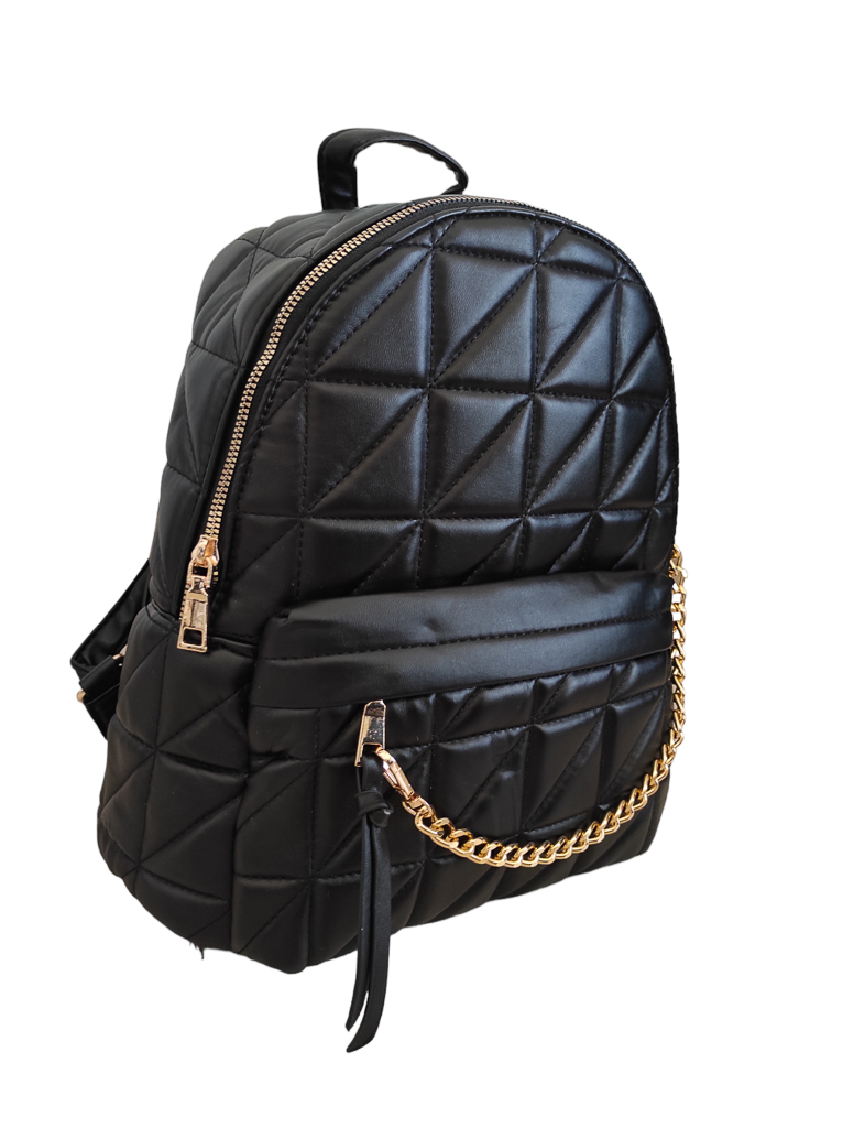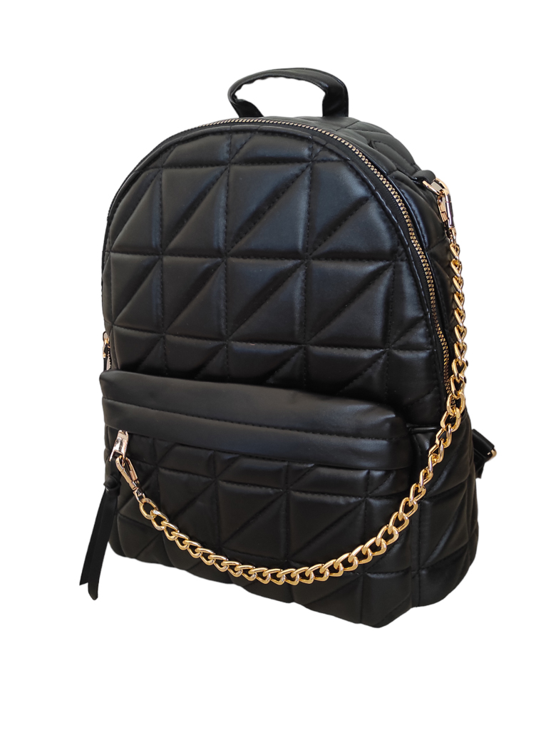 Γυναικείο σακίδιο πλάτης ανάγλυφο μαύρο χρώμα. Διαθέτει ενιαίο εσωτερικό χώρο με μικρά τσεπάκια εντός και εξωτερική θήκη με φερμουάρ στο μπροστινό μέρος της τσάντας. Τα λουράκια του προσαρμόζονται ώστε να φορεθεί ως τσάντα χιαστί.