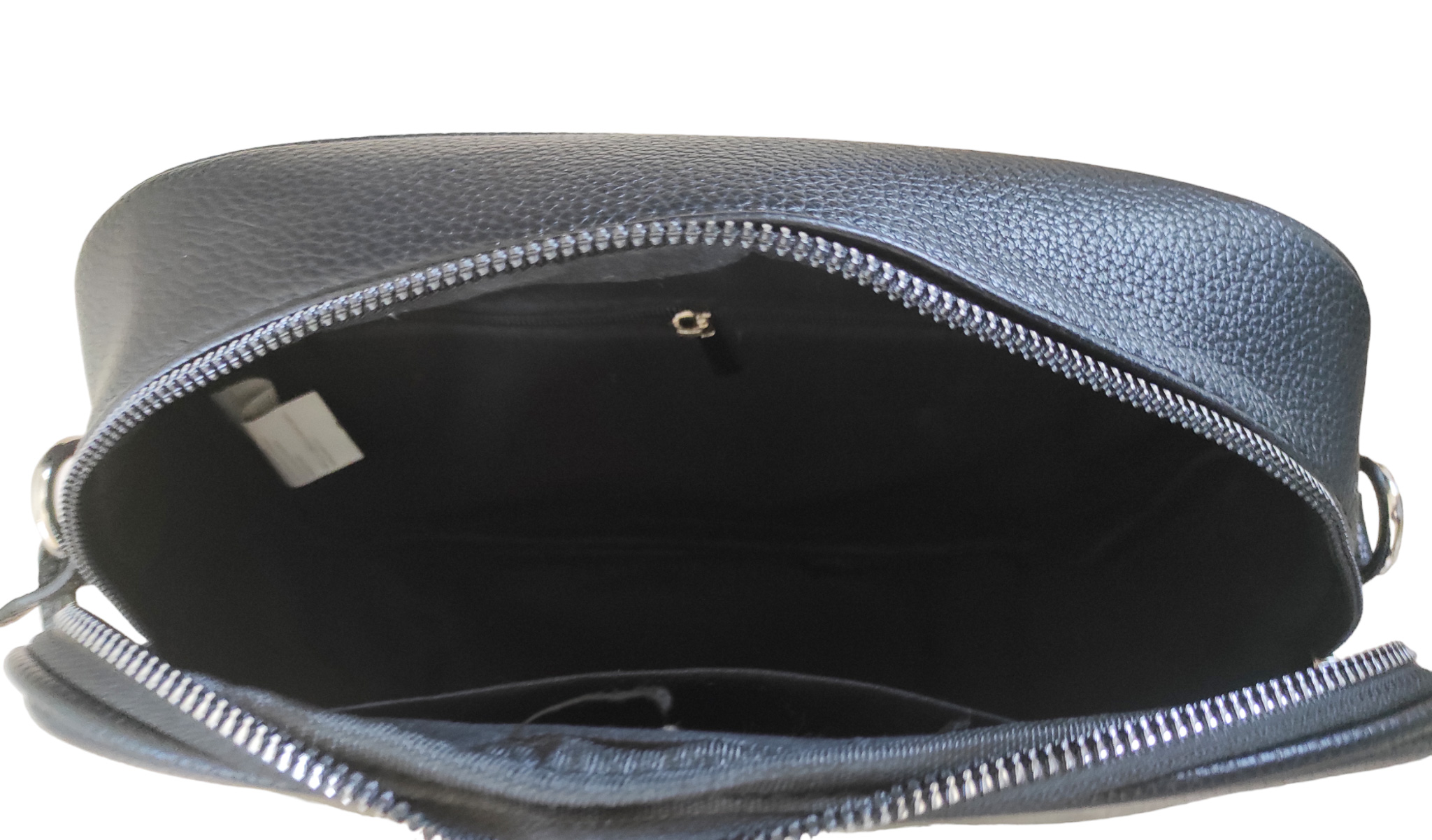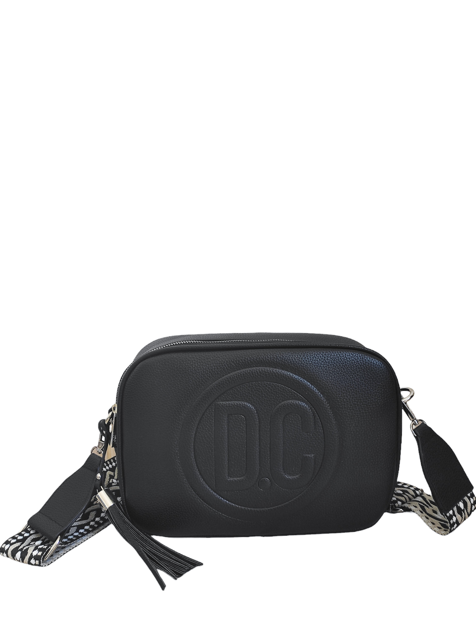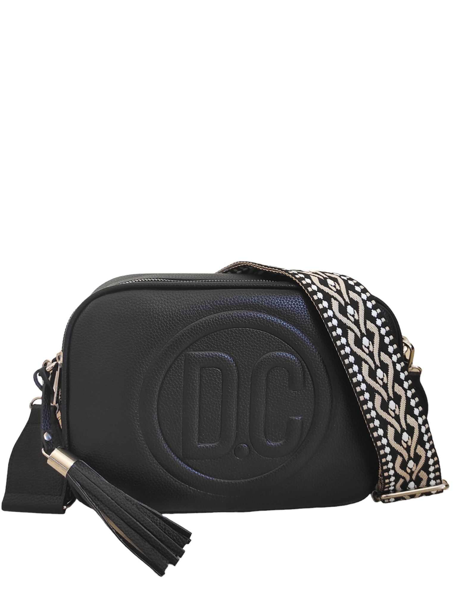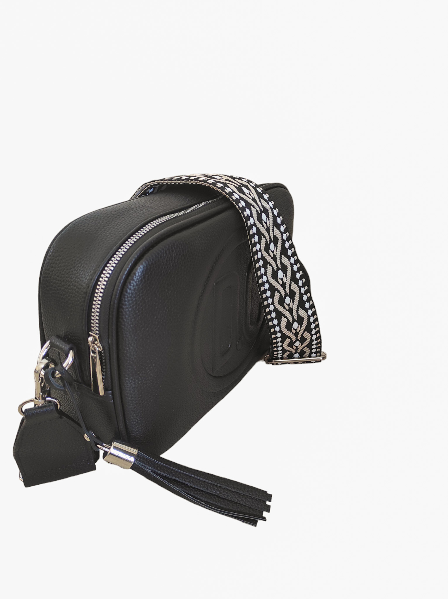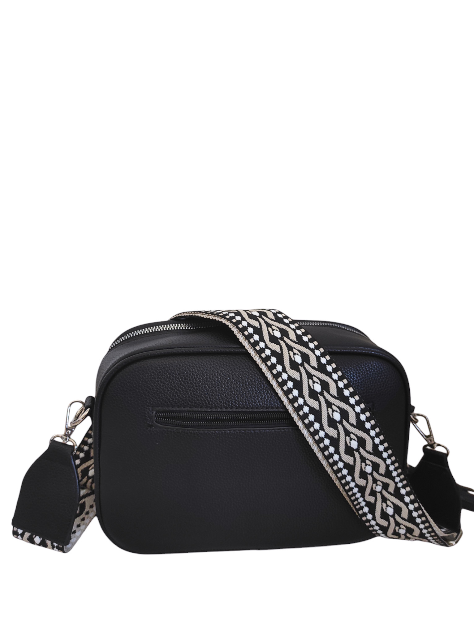 Γυναικείο τσαντάκι χιαστί μαύρο χρώμα με αυξομειώμενο υφαντό ιμάντα.Ενιαίος εσωτερικός χώρος με μικρά τσεπάκια εντός.Διαθέτει εξωτερική θήκη με φερμουάρ στο πίσω μέρος της τσάντας.