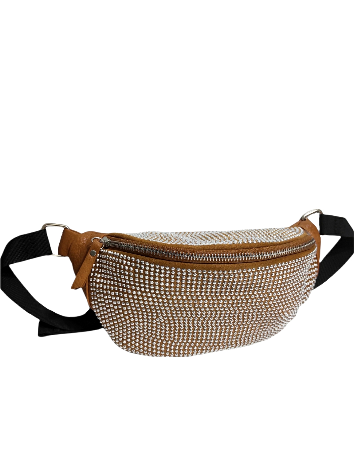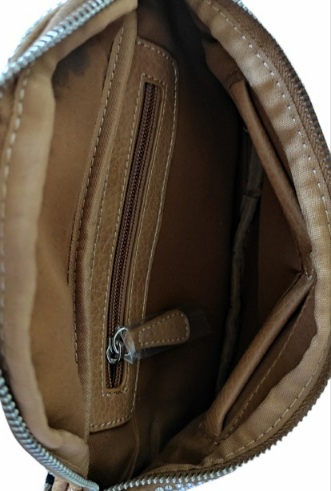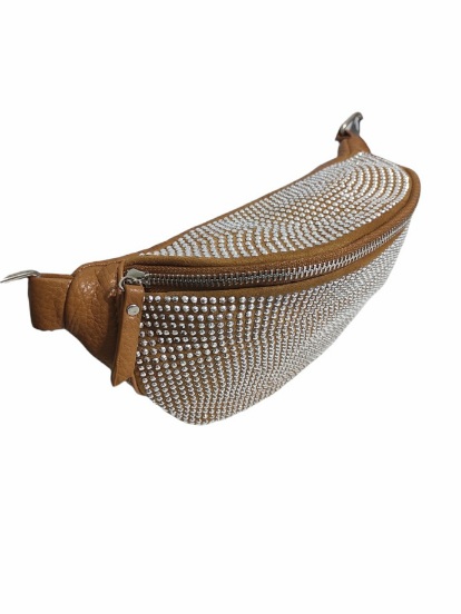 Γυναικείο τσαντάκι μέσης καφέ χρώμα με μίνι τρουκς .Ενιαίος εσωτερικός χώρος με τρία μικρά τσεπάκια εντός,το ένα εκ των οποίων με φερμουάρ.Τσεπάκι και στο πίσω μερος της τσάντας